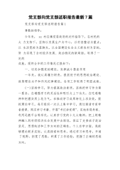 党支部向党支部述职报告最新7篇党支部向党支部述职报告篇1尊敬的领导:今年来,xx村在镇党委政府的关怀指导下,在村民的大力支持下,坚持以发展生产为中心,以村容整洁为重点,以生活宽裕为落脚点,以全面建设社会主义新农村为目的,努力实现了全村经济发展、政治稳定的新局面,取得了一定的成就。现将全年的工作情况汇报如下:一、切实加强党的建设,发挥战斗堡垒作用一年来,我认真履行职责,狠抓班子的思想政治建设、政策理论水平和作风纪律建设,各项工作取得了明显成绩。(一)坚持学习,努力提高政治素质。坚持把学习作为第一要务,在增强学习的灵活性和吸引力上下功夫,在吃透精神和把握实质上花力气,在推动学习成果转化上求实效,狠...