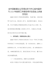 在中国电信分公司党委理论学习中心组专题学习2025年政府工作报告研讨会上的发言范文