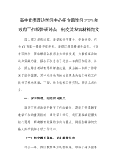 副检察长在检察院党组理论学习中心组专题学习2025年政府工作报告交流会上的研讨发言范文