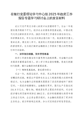 在银行党委理论学习中心组2025年政府工作报告专题学习研讨会上的发言材料