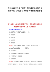 百分试题:2025年学习全国“两会”精神政府工作报告专题单选50题与学习两会精神应知应会知识测试题单选题100道【共2份】附答案百分试题:2025年学习全国“两会”精神政府工作报告专题测单选试题50题【附:答案解析】单选题(50题)每题2分。1.2025年是“十四五”规划的().A.开局之年B.攻坚之年C.收官之年D.评估之年答案:C。文中明确指出"今年是‘十四五‘规划收官之年”。2.2025年政府工作以()为指导。A.邓小平理论B.习近平新时代中国特色社会主义思想C.“三个代表”重要思想D.科学发展观答案:B.原文表述为"做好政府工作,要在以习近平同志为核心的党中央坚强领导下,以习近平新时代...