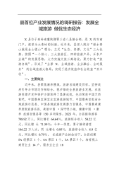 县首位产业发展情况的调研报告:发展全域旅游做优生态经济X县位于秦岭南麓陕豫鄂三省八县接合部,是X的东南门户,被誉为大秦岭的封面。近年来,县深入践行“绿水青山就是金山银山”理念,立足“生态、资源、文化”三大优势,按照“一个核心、三大旅游区、四种旅游产品、五条产业链”的发展思路,大力实施文旅三高培优,聚力打造“旅游名城”,形成了“全景X、全域旅游、全业融合、全时服务”的全域旅游大格局,实现了经济效益和社会效益“双丰收”。一、主要做法近年来,县聚焦康养慢城、旅游名城建设目标,坚持政府引导与市场运作相结合,稳步推进全县旅游业发展,在旅游资源开发和保护方面取得了显著成效,先后荣获中国天然氧吧、中国最美宜...