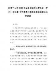 区委书记在2025年全面依法治区委员会(扩大)会议暨研究部署二季度全面依法治区工作讲话