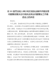 在XX县罚没收入审计和行政执法案件评查反馈问题整改暨涉企行政执法突出问题整治工作推进会上的讲话