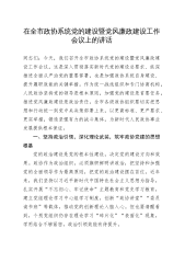 2025年在全市政协系统党的建设暨党风廉政建设工作会议上的讲话文稿