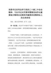 党委书记在传达学习党的二十届二中全会精神、习总书记对开展学雷锋活动作出重要指示精神及近期系列重要讲话精神会上的主持讲话现在,我们召开常委(扩大)会议。第一项议题,传达学习中国共产党第二十届中央委员会第二次全体会议精神,研究部署贯彻落实措施。由我作传达。中国共产党第二十届中央委员会第二次全体会议,于2023年2月26日至28日在北京举行。习近平总书记作了重要讲话。习近平总书记就《党和国家机构改革方案(草案)》向全会作了说明。全会同意把《党和国家机构改革方案》的部分内容按照法定程序提交十四届全国人大一次会议审议。全会指出,坚持问题导向,统筹党中央机构、全国人大机构、国务院机构、全国政协机构,统筹中...