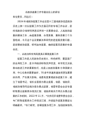 政协党组副书记在纪念中共中央“五一口号”发布75周年座谈会上的讲话今天,我们在这里召开纪念中共中央“五一口号”发布75周年座谈会,主要任务是深化政治交接,凝聚政治共识,缅怀各民主党派和无党派人士与中国共产党团结奋斗的光辉历程,促进我们更加自觉地巩固和壮大爱国统一战线,坚持和完善中国特色社会主义新型政党制度,不断开创多党合作事业新局面。历史是一面镜子,它记录过去,见证现在,昭示未来。75年前,中共中央发布“五一口号”,发出召开政治协商会议、成立民主联合政府的号召,得到各民主党派、无党派民主人士热烈响应,揭开了中国共产党同各党派、各团体、各族各界人士协商建国的序幕,奠定了中国共产党领导的多党合作和...