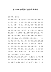 在2024年全市政协系统机关建设工作部署推进会上的讲话 各位委员,同志们: 近年来,市县两级政协机关深入贯彻习近平新时代中国特色社会主义思想特别是习近平总书记关于加强和改进人民政协工作的重要思想,全面落实中央、省委政协工作会议精神,担当责任使命,勇于开拓创新,在加强自身建设、服务政协履职等方面,探索了许多生动鲜活的经验做法,取得了一批可视可感的工作成果,为人民政协政治机关建设、专门协商机构建设作出了积极贡献。特别是在市政协参加单位和各县政协机关的参与支持下,全市反映社情民意信息工作迈入全省先进行列,市政协办公室连续两次在全省政协办公厅反映社情民意信息工作座谈会上作典型发言。这些成绩的取得,...