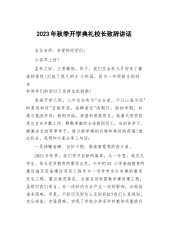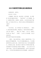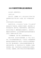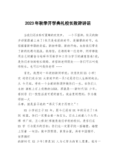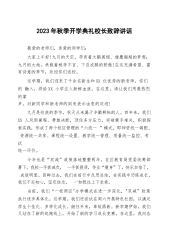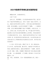 2023年秋季开学典礼校长致辞讲话敬爱的老师们,亲爱的同学们:大家上午好!九月的天空,孕育着大鹏展翅、雄鹰翱翔的梦想;九月的大地,承载着桃李不言、下自成蹊的骄傲!在这充满希望、富有诗意的季节,欢迎你们返校。这学期,我们迎来了千余名新生和XX位优秀的新老师,你们的融入,将给XX小学注入新鲜血液。在这里,请让我们用最热烈的掌声,对新同学和新老师的到来表示由衷的欢迎!九月是收获的季节,秋天从来属于辛勤耕耘的人。四年来,我们XX人风雨兼程、勇敢决断,顶住多方压力,突破棘手难关,积极探索实践,形成了两个校区管理的“六统一”模式,即师资统一调配、资源统一共享、课程统一设置、教学统一管理、质量统一监控、考试...