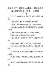 党支部书记、校长在xx建校xx周年纪念大会上的讲话汇编(15篇)(高校)