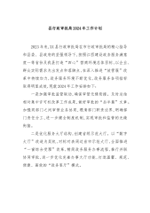 县行政审批局2024年工作计划2023年来,XX县行政审批局在市行政审批局的精心指导和县委、县政府的坚强领导下,按照江西建设政务服务满意度一等省份及我县打造“四心”营商环境总体目标,以企业、群众实际需求为出发点和落脚点,在深入推进“放管服”改革中持续加力,政务服务环境不断优化,政务服务各项指标取得明显成效,现就2024年工作安排如下:一是加强审批监管联动,确保审管无缝衔接。及时总结相对集中许可权改革工作成果,做好审批的“后半篇”文章。加强同部门之间审管业务协同,理清部门职责边界,明确部门责任分工,进一步健全制度机制,实现审批和监管的无缝衔接。二是优化服务大厅结构,创建省级示范大厅。以“数字大厅...
