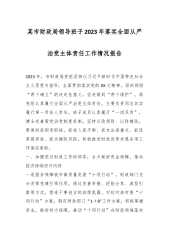 某市财政局领导班子2023年落实全面从严治党主体责任工作情况报告2023年,市财政局党组坚持以习近平新时代中国特色社会主义思想为指导,全面贯彻落实党的XX大精神,深刻领悟“两个确立”的决定性意义,坚决做到“两个维护”。局党组认真履行全面从严治党主体责任,主要负责同志切实履行第一责任人责任,班子成员认真履行“一岗双责”,健全完善管党治党制度机制,坚持以政领财、以财辅政,聚焦财政职责职能,抓收入促平衡、抓支出保重点、抓改革提质效、抓关键防风险,积极推进财政改革发展各项工作落实落细。一、加强党对财政工作的领导,全力做好资金保障,推动经济持续回升向好一是服务保障我市高质量发展“十项行动”。财政部门充分...