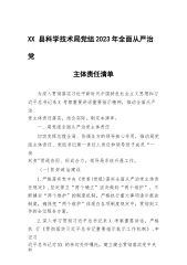 XX县科学技术局党组2023年全面从严治党主体责任清单