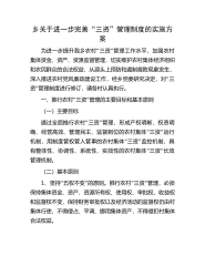 乡关于进一步完善“三资”管理制度的实施方案“”为进一步提升我乡农村三资管理工作水平,加强农村集体资金、资产、资源监督管理,切实维护农村集体经济组织和农民群众的合法权益,从源头上预防和遏制腐败现象发生,“深入推进农村党风廉政建设工作,经乡党委研究决定,对三”资管理制度进行修订,请各村认真执行。“”一、推行农村三资管理的主要目标和基本原则(一)主要目标“”通过全面推行农村三资管理,形成产权明晰、权责明“”确、经营高效、管理民主、监督到位的农村集体三资运行“”机制,用制度管权管人管事的农村集体三资监控机制,具““有整体性、协调性、系统性、实效性的农村集体三资长效管理机制。(二)基本原则1“”“”、坚...