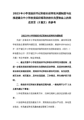 2023年小学党组织书记和校长经常性沟通制度与在推进建立中小学校党组织领导的校长负责制会上的表态发言(2篇文)供参考