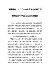 党课讲稿:以刀刃向内自我革命的勇气不断推进新时代党内法规制度建设