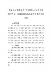一、指导思想为深入贯彻落实习近平总书记关于加强党的作风建设的重要论述,进一步巩固和拓展落实中央八项规定精神成果,根据党中央、省、市纪委监委关于持续深化纠治“四风”工作的部署要求,某某县纪委监委决定在全县范围内开展深入纠治违规发放津补贴、违规收送礼品礼金专项整治工作。本方案旨在通过专项整治,切实解决违规发放津补贴、违规收送礼品礼金等群众反映强烈的突出问题,推动全县党风政风持续向好,为全县经济社会发展营造风清气正的良好环境。二、工作目标1.坚决纠治突出问题:全面排查和纠正违规发放津补贴、违规收送礼品礼金等行为,严肃查处顶风违纪案件,形成有力震慑。2.完善制度机制:针对专项整治中发现的问题,督促相关...