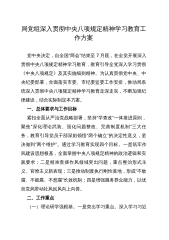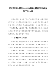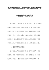 机关单位党组深入贯彻中央八项规定精神学习教育的工作方案文稿党中央决定,自全国“两会”结束至7月底,在全党开展深入贯彻中央八项规定精神学习教育,教育引导全党深入学习贯彻《中央八项规定》及其实施细则精神。为认真贯彻党中央、中央纪委部署,全面落实市委、市纪委监委工作安排,推动局系统深入贯彻中央八项规定精神学习教育走深走实,不断加强纪律建设,结合实际制定本方案。一、总体要求与工作目标紧扣全面从严治党战略部署,坚持“学查改”一体推进原则,聚焦“深化理论武装、强化问题整改、完善制度机制”三大任务,教育引导党员干部深刻领悟“两个确立”的决定性意义,坚决做到“两个维护”。通过学习教育实现四个目标。一是筑牢作风...