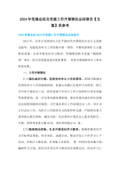 2024年党建总结党建工作开展情况总结报告范文3篇【供参考选用】