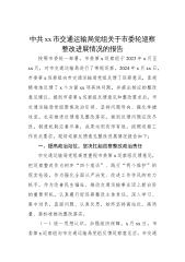 某局党组关于市委体育领域“机动式”巡察反馈意见整改情况的报告按照市委巡察工作领导小组关于印发《市委第五巡察组关于体育领域“机动式”巡察的反馈意见》的通知精神和巡察情况反馈会议的要求,为坚决贯彻落实习近平总书记关于巡视巡察整改相关重要指示精神,全面落实党中央和省委、市委巡察工作领导小组关于巡视巡察整改的要求和《关于加强巡视整改和成果运用的意见》规定,坚持问题导向和责任导向相结合,目标导向和结果导向相统一,切实做到反馈问题应改尽改,责任落实到边到底,制度机制应善尽善,成果运用有形有效。现将整改落实进展情况报告如下:一、全力抓实巡察整改政治责任市*局党组坚持以习近平新时代中国特色社会主义思想为指引,...