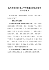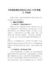 两篇稿:市纪委监委机关党总支2024年上半年党建工作总结报告