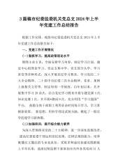 两篇稿:市纪委监委机关党总支2024年上半年党建工作总结报告根据工作安排,现将市纪委监委机关党总支2024年上半年党建工作总结报告如下:一、党建工作开展情况(一)狠抓学习,提高政策理论水平围绕主业主责,全面安排学习内容,制定学习计划,通过中心组理论学习、党总支集中学、党支部分头学、学习讲堂等多种形式,深入开展党纪学习教育、学习党的二十大全会精神、二十届中央纪委三次全会精神、党章、条例上级相关文件等。制定每周一学制度,自年初以来,共开展集中学习20余次,结合党纪学习教育开展专题党课4次、知识竞赛1次,并开展*测试9次。充分利用“学习强国”平台,鼓励全体干部职工利用业余时间每日学习,学习掌握新政策...