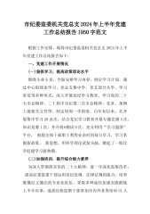 市纪委监委机关党总支2024年上半年党建工作总结报告1950字范文