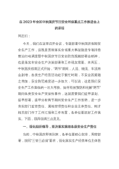 在全镇杭州亚运会中秋国庆维稳安保暨重点领域信访突出问题专项攻坚工作会议上的讲话提纲同志们:杭州亚运会是党的XX大胜利召开后我国举办的最大规模、最高水平的国际综合性体育赛事,举国关注、举世瞩目。同时,第五届国际道教论坛在XX同期开幕(杭州亚运会9月23日开幕,道教论坛9月24日-25日),又恰逢中秋国庆双节,维稳安保压力很大。昨天下午,XX也是召集我们开了全市的维稳安保的工作会议。我们要进一步提高政治站位、强化大局意识,一体抓好杭州亚运会、道教论坛、中秋国庆维稳安保和信访攻坚工作,确保全市政治社会大局持续平安稳定。刚才,政法委员XX对我们全镇的信访情况作了通报部署,请各村务必认真抓好落实,守住“...