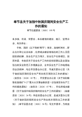 古田镇人民政府关于切实做好中秋国庆期间安全生产工作的通知2020-09-23各村(社区),镇安委会各成员单位,有关企业:2020年中秋、国庆(以下简称“两节”)将至,请各部门立即开展新一轮各领域安全隐患大排查大整治,以查缺补漏为主线,采取“回头看”形式,制定专项方案,做到对标对表,认真开展节前检查,坚决杜绝各类事故发生。现就切实做好“两节”期间安全生产工作的有关事项通知如下:一、切实提高思想认识,全面落实安全责任“两节”期间是生产和旅游旺季,人员流动量大,交通运输繁忙,也是事故的易发期。各村(社区)、各部门要严格落实属地责任、部门监管责任、企业主体责任,切实履行好各自职责,深入分析本辖区、本行...