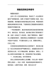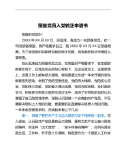 预备党员入党转正申请书(大学生)敬爱的党组织:去年,经党组织的批准,我终于成为了一名光荣的预备党员。在一年的预备期中,我踏踏实实、敢于担当、戒骄戒躁,注重提高自身的党性修养,在组织的教育下,在党员同志的帮助下,我各方面都以一名正式党员的标准严格要求自己,持续加强政治思想学习、对工作和学习精益求精、认真负责,无论思想、理论、还是行动上,都有了很大的提高、进步。现在,我郑重向党组提出转正申请。为了便于党组织对自己的考察,我将自己一年来的情况汇报如下:一、政治思想方面一是主动加强政治学习。利用课余时间认真学习党史和党章,了解我们党的光辉奋斗史、党的伟大精神、党的宝贵经验,从而更加珍惜现在的生活,坚定...