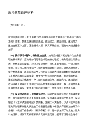 领导班子政治建设自评材料一年来,在区委、区政府的坚强领导下,XX单位领导班子始终坚持把党的政治建设摆在首要位置,加强党的政治建设,努力推动管理水平和服务能力的提升。根据区委对区直机关领导班子和领导干部开展政治建设考察的要求,结合本中心领导班子实际,认真查找了在思想、工作、作风上等方面存在的问题,各项工作取得积极进展。现将有关情况报告如下:一、领导班子政治建设情况(一)把握政治方向方面。XX大报告提出党的建设要以政治建设为统领,以“首要任务”的表述方式凸显新时代党的政治建设所指向的重点。班子成员牢固树立向党中央看齐、向党的理论和路线方针政策看齐、向中央和省委、市委、区委重大决策部署看齐的党性观念...