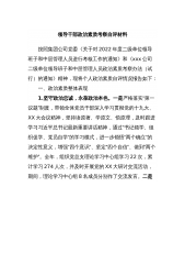 领导干部政治素质考察自评材料按照集团公司党委《关于对2022年度二级单位领导班子和中层管理人员进行考核工作的通知》和《xxx公司二级单位领导班子和中层管理人员政治素质考察办法(试行)的通知》精神,现将个人政治素质自评情况报告如下:一、政治素质整体表现1.坚守政治忠诚,永葆政治本色。一是严格落实“第一议题”制度,带领全体党员干部深入学习贯彻党的十九大、XX大会议精神,坚持读原著、学原文、悟原理,及时跟进学习习近平总书记最新重要讲话精神,通过“书记领学、组织促学、党员自学”的学习模式,进一步领悟“两个确立”的决定性意义,增强“四个意识”、坚定“四个自信”、做到“两个维护”。全年,组织党总支理论学习...