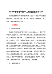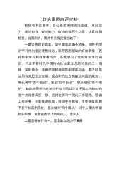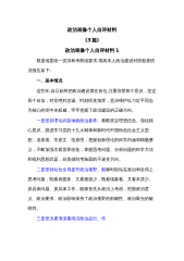 政治画像个人自评材料(3篇)政治画像个人自评材料1根据省委统一安排和考察组要求,现将本人政治建设对照检查情况报告如下:一、基本情况这些年,自己始终把政治建设摆在首位,注重培塑四个意识,坚定四个自信,对党绝对忠诚、时刻听党指挥,坚决维护以习近平同志为核心的党中央权威,牢牢把握了政治建设的正确方向。一是坚持理论武装锤炼政治素养。着眼坚定理想信念、强化核心意识,跟进学习党的十九大精神和新时代中国特色社会主义思想,读原著、学原文、悟原理,把握创新理论的科学内涵和精髓要义,不断加强主观世界改造,掌握思考问题、分析问题的科学方法和锐利思想武器,自觉做到考验面前不迷失方向。二是坚持站位全局提升政治视野。能够...