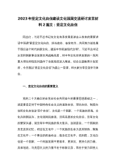 2023年坚定文化自信建设文化强国交流研讨发言材料:坚定文化自信与坚定文化自信,凝聚精神力量,在做好文化传承中展现担当作为【两篇文】