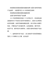持续塑造高质量发展新动能新优势全面打造时尚智造产业金廊——镇党委书记2023年座谈发言材料持续塑造高质量发展新动能新优势全面打造时尚智造产业金廊2023年是贯彻落实党的二十大开局之年,*街道将全面汲取新时代十年的伟大变革中磅礴伟力,沿着习主席擘画的宏伟蓝图,发挥空铁枢纽廊道优势,借力空铁大道通车利好,不断优化产业功能布局,以高端智造、数字经济、临空产业、楼宇经济引领带动,全面打造时尚智造产业金廊。一、始终坚持“四个结合”,深入推动学习宣传贯彻落实党的二十大精神入心入脑、走实走深党的二十大胜利召开,习近平总书记代表第十九届中央委员会向大会所做的报告总揽全局、气势恢宏,内容尽显民本思想、制度优势、...