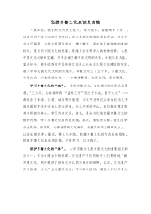 乡村干部反腐倡廉座谈发言稿“山西省寿阳县温家庄乡温家庄村的村党支部书记、村委主任张九义因涉嫌违纪违法被查……”近日,基层反腐案件频频爆出,令人大跌眼镜,本该是村民致富"带头人"的村干部,却贪污腐败,甚至成为“黑恶势力”,给党和人民带来严重危害。因此,我作为一名村干部,要高度重视“蝇贪蚁腐”的问题,严格落实全面从严治党各项工作要求,廉洁自律,切实当好筑牢乡村"防腐墙”的“关键角色"。当一名“不想腐”的“廉政示范员”,夯实“两袖清风朝天去,免得阎间话短长”的廉洁之“基”。“其身正,不令而行;其身不正,虽令不从”。村干部作为全村党员的“领头雁”,必须从思想上、行动上做好廉洁自律表率,要严格按“规定动...