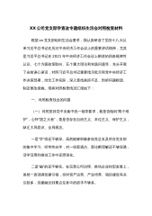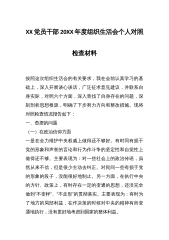 2023年主题教育专题组织生活会个人“六个方面”对照检查材料 按照中共XXXX纪委机关、中共XXXX委组织部、XX委主题教育办《关于认真开好第一批主题教育2023年度专题生活会的通知》要求,会前我进行了认真的自学和专题集中学,结合思想和工作实际,紧扣“学思想、强党性、重实践、建新功”总要求,围绕“六个方面”开展批评和自我批评,开展谈心谈话以及开展意见征集到XX条,归纳XX条,深挖问题根源,认真制定整改措,现对照检查如下: 一、上一年度组织生活会存在问题的整改情况 针对上年度组织生活会自己查摆的XX个方面XX个问题和同志们批评提出的问题,我先后制定了XX条整改措施,坚持对标对表、举一反三,...