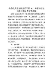 2023年主题教育专题组织生活会个人对照检查材料(“六个方面”)按照中共X纪委机关、中共X委组织部、X委主题教育办《关于认真开好第一批主题教育2023年度专题生活会的通知》要求,会前我进行了认真的自学和专题集中学,结合思想和工作实际,紧扣“学思想、强党性、重实践、建新功”总要求,围绕“六个方面”开展批评和自我批评,开展谈心谈话以及开展意见征集到X条,归纳X条,深挖问题根源,认真制定整改措,现对照检查如下:一、上一年度组织生活会存在问题的整改情况针对上年度组织生活会自己查摆的X个方面X个问题和同志们批评提出的问题,我先后制定了X条整改措施,坚持对标对表、举一反三,统筹抓好各项整改,目前已基本整改...