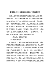 党支部(党委、党组)2021年度组织生活会“四个对照”检查材料 根据县党史学习教育办公室关于召开党史学习教育组织生活会的要求,会前,**党支部聚焦主题深入学习,坚持学深悟透,紧扣4个方面问题,深入开展谈心谈话,广泛征求意见建议,对照查找自身存在的差距和不足,进行深刻剖析,明确了今后努力方向和整改措施。现将对照检查情况报告如下:一、存在的主要问题(一)对照履行党章规定的职责任务。一是在“学懂”上还有差距。学懂弄通做实习近平新时代中国特色社会主义思想还不够深刻,导致学习缺少挤劲、钻劲,距离入脑入心、真懂真信的要求还有一些差距。比如,支委成员学习有时流于形式,在交流体会时满足于“念稿子”,没有真正“...