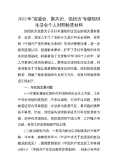 2022年“迎盛会、聚共识、强担当”专题组织生活会个人对照检查材料(二)