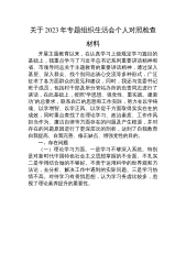 2022年“迎盛会、聚共识、强担当”专题组织生活会个人对照检查材料按照机关党委关于开好专题组织生活会的相关通知要求,会前,我深入学习了党的十九届六中全会精神、党章和《中国共产党纪律处分条例》等党内重要法规,进一步提高思想认识、把握标准要求,打牢了开好专题组织生活会的思想基础。积极参加了支部集中学习和个人自学,深入开展谈心谈话的基础上,聚焦这次组织生活会主题,对表对标五个方面认真查摆检视存在的问题,深刻剖析思想根源,明确了整改措施和今后努力方向。现将对照检查情况汇报如下。一、存在的主要问题(一)学懂弄通做实新时代中国特色社会主义方面。工作中存在求稳怕变思想,不求出成绩、只求不出问题,遇到难题还存...