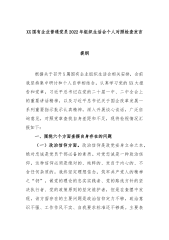 2022年民主组织生活会个人对照检查材料(对照六个方面)按照*党委关于召开2022年民主组织生活会相关要求,我系统学习了党的二十大精神、《习近平谈治国理政》第四卷等内容,为开好这次专题民主生活会打牢了思想基础。同时,我紧密联系思想工作实际,深入开展谈心谈话、交流思想、交换意见,对照6个方面,深入查找了自身存在的不足,剖析了问题根源,明确了下步努力方向。现对照检查如下。一、查摆的问题(一)在带头深刻领悟“两个确立”的决定性意义,增强“四个意识”、坚定“四个自信”、做到“两个维护”方面一是关于做到“两个维护”,存在“做”的非常坚决,但“到”的质量、效果有时不特别理想的问题。比如,在落实习近平总书记...