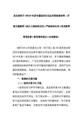 党支部班子2023年度专题组织生活会对照检查材料(开展主题教育+执行上级组织决定+严格组织生活+党员教育管理监督+联系服务群众+自身建设)按照XX公司党委办公室《关于第二批XX基层党支部召开专题组织生活会和开展民主评议党员的预通知》要求XX中支第一党支部在深入学习贯彻XX,学习通知明确的XX项内容基础上,广泛征求意见建议,认真开展谈心谈话全面查找在组织开展XX等方面的问题和不足,深挖产生问题的思想根源,并提出了今后努力的方向和整改措施。现对照检查如下:一、查摆的主要问题(一)组织开展XX方面。一是理论学习环节不够扎实。党支部开展XX主要通过参加公司党委统一组织的读书班集中学习方式进行,支部组织...