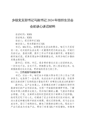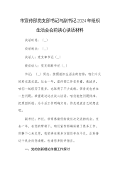 市宣传部党支部书记与副书记2024年组织生活会会前谈心谈话材料谈话时间:〔...〕谈话地点:〔...〕谈话人:党支部书记〔...〕被谈话人:党支部副书记〔...〕书记:〔...〕同志,按照组织生活会的安排,咱们今天好好交流交流。过去一年,宣传部工作任务重、挑战多,咱们一起经历了很多,也取得了不少成绩,但肯定也存在一些问题。希望通过这次谈心谈话,咱们能把问题找准、把原因析透,为今后工作明确方向,你先说说自己的想法吧。副书记:书记,非常感谢您给我这次交流的机会。过去一年,在您的带领下,咱们宣传部确实做了很多工作。但静下心来反思,我觉得在很多方面还存在不足,正好借这个机会向您请教,也请您多批评指正。...