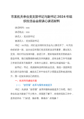 宣传部党支部书记与副书记2024年组织生活会会前谈心谈话材料范文
