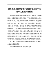 税务局机关党支部书记党史学习教育专题组织生活会个人检视剖析材料按照区委党史学习教育领导小组办公室《关于开好党史学习教育专题组织生活会通知》要求,我紧紧围绕“学党史、悟思想、办实事、开新局”专题组织生活会这一主题,在深入开展谈心谈话、广泛征求意见建议的基础上,联系自己的思想和工作实际,认真学习了习近平总书记在庆祝中国共产党成立100周年大会上的重要讲话,学习了习近平新时代中国特色社会主义思想和党中央指定和学习材料。同时对照党史学习教育目标要求、党员先锋模范作用发挥等五个方面进行盘点和检视。现将具体情况汇报如下:一、学习习近平总书记在庆祝中国共产党成立100周年大会上的重要讲话情况,有什么心的体会...