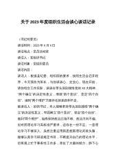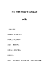 第二批主题教育民主生活会组织生活会谈心谈话记录(8篇)篇(1) A:根据计划安排,党支部组织开展2023年度组织生活会,需要开展一次谈心谈话,主要通过谈谈思想、谈工作、谈建议,先从思想上谈一谈? B:去年以来,我坚持把强化理论学习作为坚定理想信念的重要途径,认真参加主题教育,学习习近平新时代中国特色社会主义思想、《习近平著作选读》等内容,深入理解“国之大者”的深刻内涵,不断通过理论学习提高政治素养,坚决当好“两个确立”的坚定捍卫者、忠实践行者。 A:谈一谈工作中存在不足? B:首先感谢主任对于我的悉心指导与帮助,使我在工作上有了长足的进步。通过这一段时间的工作,我也发现有很多欠缺,不能...