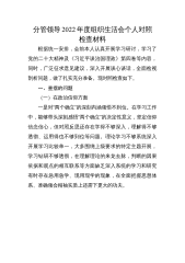 【组织生活会】领导干部2022年度组织生活会个人检视剖析材料