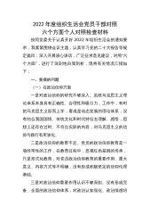 2022年度组织生活会党员干部对照六个方面个人对照检查材料