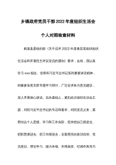 2022年民主组织生活会个人对照检查材料(对照六个方面)按照*党委关于召开2022年民主组织生活会相关要求,我系统学习了党的二十大精神、《习近平谈治国理政》第四卷等内容,为开好这次专题民主生活会打牢了思想基础。同时,我紧密联系思想工作实际,深入开展谈心谈话、交流思想、交换意见,对照6个方面,深入查找了自身存在的不足,剖析了问题根源,明确了下步努力方向。现对照检查如下。一、查摆的问题(一)在带头深刻领悟“两个确立”的决定性意义,增强“四个意识”、坚定“四个自信”、做到“两个维护”方面一是关于做到“两个维护”,存在“做”的非常坚决,但“到”的质量、效果有时不特别理想的问题。比如,在落实习近平总书记...